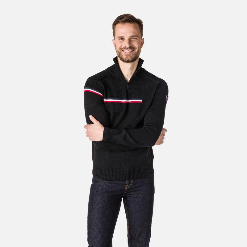 Pour une journée sur les pistes ou une soirée en ville, le pull Major 1/2 Zip est le partenaire idéal. L’utilisation de la laine mérinos rend ce pull pour homme de la marque Rossignol incroyablement doux et isolant contre le froid. Son col haut zippé offre également une chaleur et un confort incomparable. Reprenant l’histoire de Rossignol, la bande tricolore sur l’avant du pull vous fera porter haut les couleurs françaises. Aux pistes citoyens !